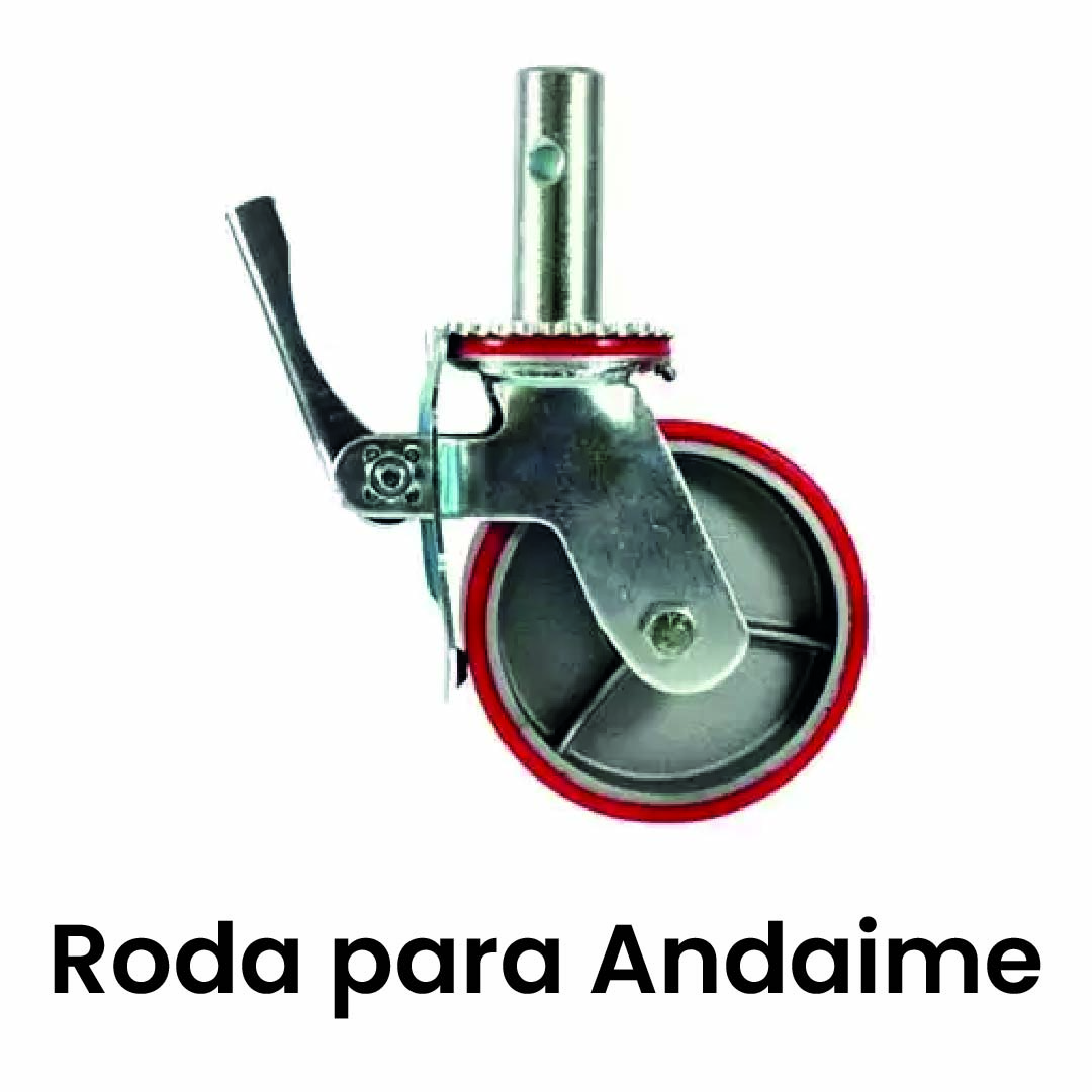 Roda para Andaime: Dimensão vertical 40 centímetros, dimensão horizontal -, peso da unidade 2,4kg e material de metal.